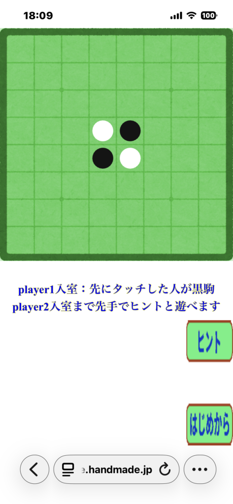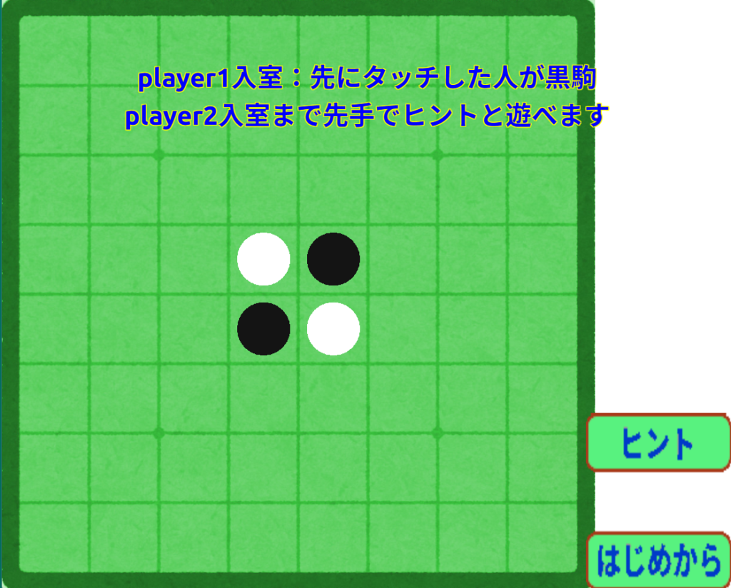 2人同じ部屋番号のボタンをクリックしてゲームを開始してください。2つとも同じゲームです。「ヒント」ボタンを押せば、おすすめの手を表示します。ヒントは10回までです。