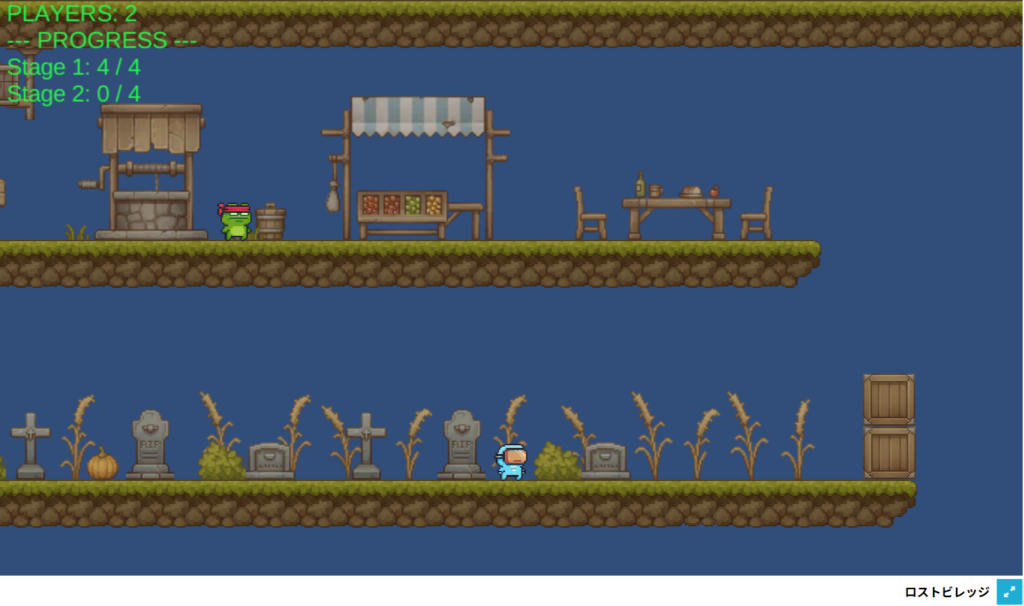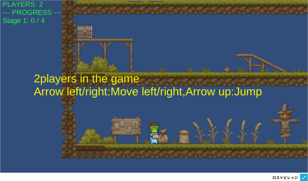 PUN2を使った2Dアクションパズルゲームです。4つの宝箱を開けたら次の面です。